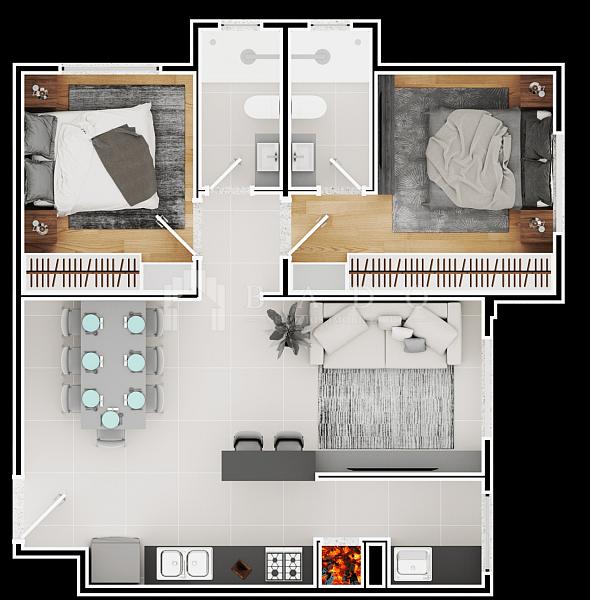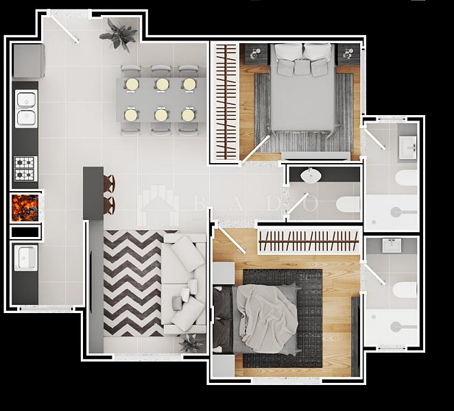 2 dormitórios (2 suítes)