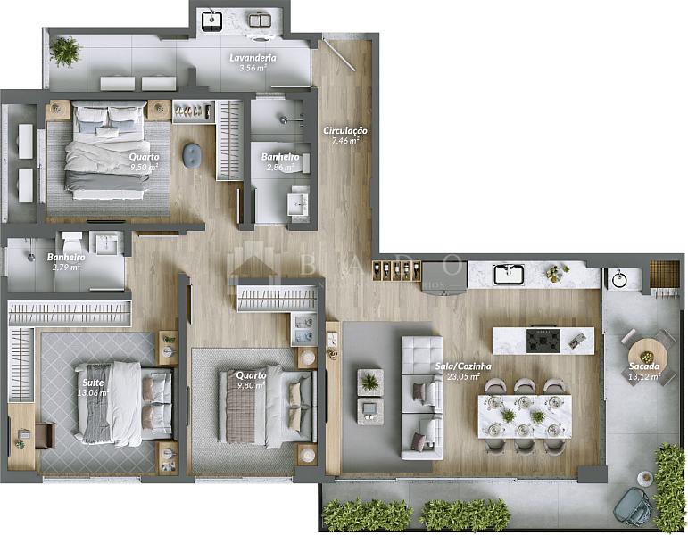 103,00 m² de área privativa